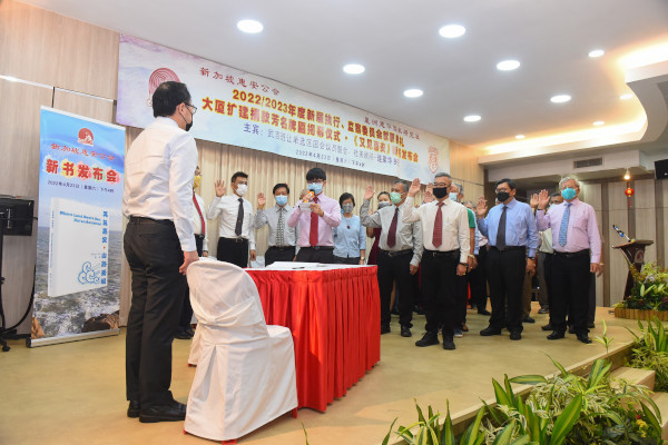 2022年4月23日(星期六)下午4时,在惠安公会礼堂举行两会新届执行、监察委员会就职典礼、大厦扩建捐款芳名录牌匾的揭幕仪式及《又见惠安》新书发布会。恭请会、社务顾问连荣华乡贤莅临主持监誓,当天包括顾问、荣誉社长、名誉社长、名誉董事、理事们,宗乡总会、福建会馆、泉属会馆代表们、国大学生们,共有100多位出席。 星洲惠华国术研究社新届执行、监察委员的宣誓就职仪式由曾应亿总务带领全体执监委员进行庄严宣誓仪式,社长、总务及财政在连荣华乡长见证下签署宣誓书,再由新旧两任财政进行交卸及接任仪式。最后全体执监委员拍照留恋。整个过程即简洁又隆重。 新任社长陈崑玉发表感言,他说从小在惠华长大,在场很多师兄包括:初远兄、炳辉兄、奕葆兄,都是在惠华一起成长。非常荣幸获得乡亲们的支持并被推选为社长,友明兄为惠华创造辉煌,他感到身负重任,不过非常高兴的事,这个执监委三代人结合,是充满活力和包容的团队,团体的平均年龄在65岁,最年轻就是我会新任总务曾应亿还有武术副主任康睿芯。明年是惠华的60周年大庆,如果要继续另外一个60年,我们必须广纳贤才,走出去扩大合作伙伴,让惠华可以持续发展。惠华是特别的组织,既是宗乡会馆,又是武术团体,惠华的根也是惠安人,所以将会深化跟公会的关系和合作,主办更多活动,加强联系。另外我们也有一批杰出的教练,在全国各个角落传授武术,薪火相传,为我国武术尽一份力。他相信在大家的支持、鼓励和鞭策下,惠华会更好。 最后,主宾连乡长致词,他向所有当选的乡亲们表示祝贺,你们的才干、人品得到乡亲们的认可,在今后的两年里,你们将肩负着团结乡亲,带领会馆继续进步的重任。两会在陈友明及陈崑玉两位乡贤的领导下,大家同心协力,肯定能实现既定目标。在此他祝福两会会务蒸蒸日上,百尺竿头,更进一步!也祝福大家身体健康、事业发达,家庭幸福,谢谢。