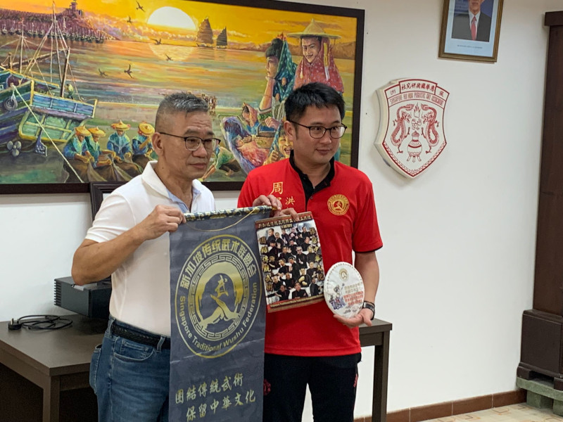 今日新加坡传统武术联盟会到访星洲惠华国术研究社。并于理事和武术教练们互相交流。